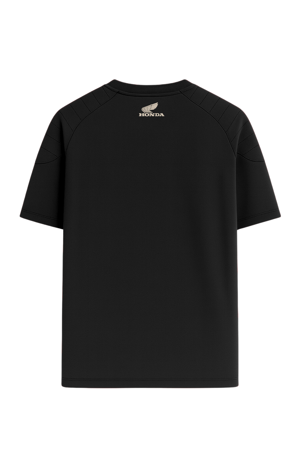 Heritage T-shirt made of 100% premium cotton with a refined peach hand effect for a soft and elevated touch. The front is defined by the embroidered Honda logo in Japanese characters, while the shoulders are enriched with applied fabric panels featuring contrast topstitching, creating a distinctive and refined detail. A timeless item that combines premium quality with understated style.