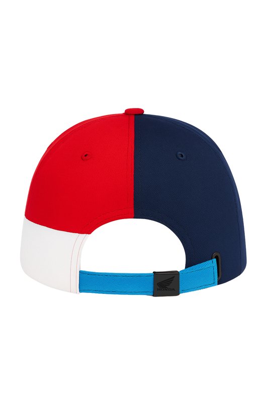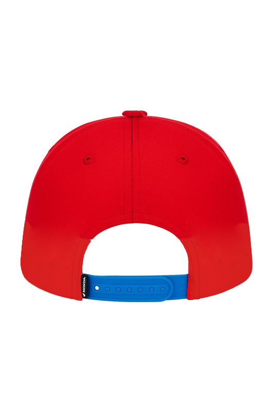 HRC snapback cap in 100% cotton, featuring a structured 6-panel design. It features the HRC logo and the iconic Honda wing printed on the front, it showcases contrast color panels...