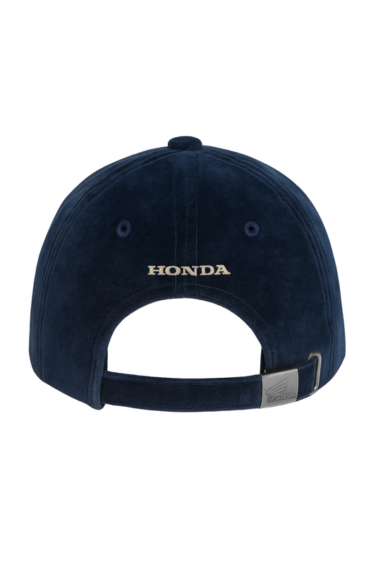 Heritage baseball cap in navy blue, with a velvet effect, for a refined finish. The embroidered patch with the signature Honda wing adds a distinctive and elegant accent to this...