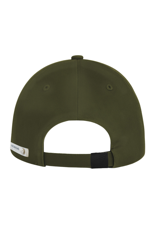 Heritage baseball cap in olive green, crafted from 100% premium cotton for a refined and durable finish. The embroidered patch with the iconic Honda wing in contrasting tones adds a...