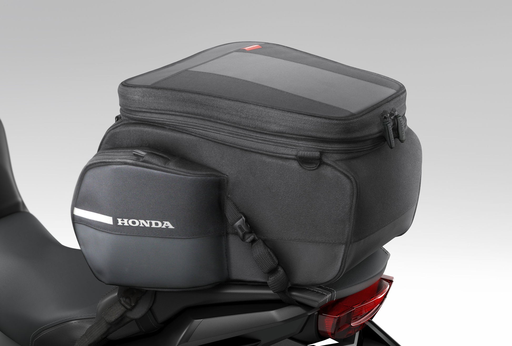 Functional rear bag specifically adapted to the tapered shape of the rear seat. This pack contains: • Rear Seat Bag (08L73-MKJ-D00) • Seat Bag Att. (08L70-MKF-D40).