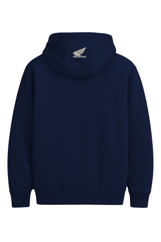 Please note: Size XL is available to order but currently has an estimated arrival date of July 2026. Blue hoodie with a central zip and pockets, featuring the Honda Wing...
