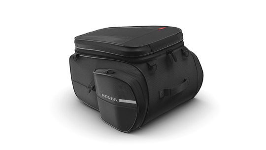 Functional rear bag specifically adapted to the tapered shape of the rear seat. Easily attached and perfectly stable when installed with the specific attachment included. The rear carrier is required for fitment and must be ordered separately. Dimensions in mm (W x L x H): 355 X 365 X 243 The kit includes: -08L73-MKJ-D00 Rear Seat Bag -08L70-MKF-D40 Rear Seat bag Attachment. Compatible with 2025 model only.
