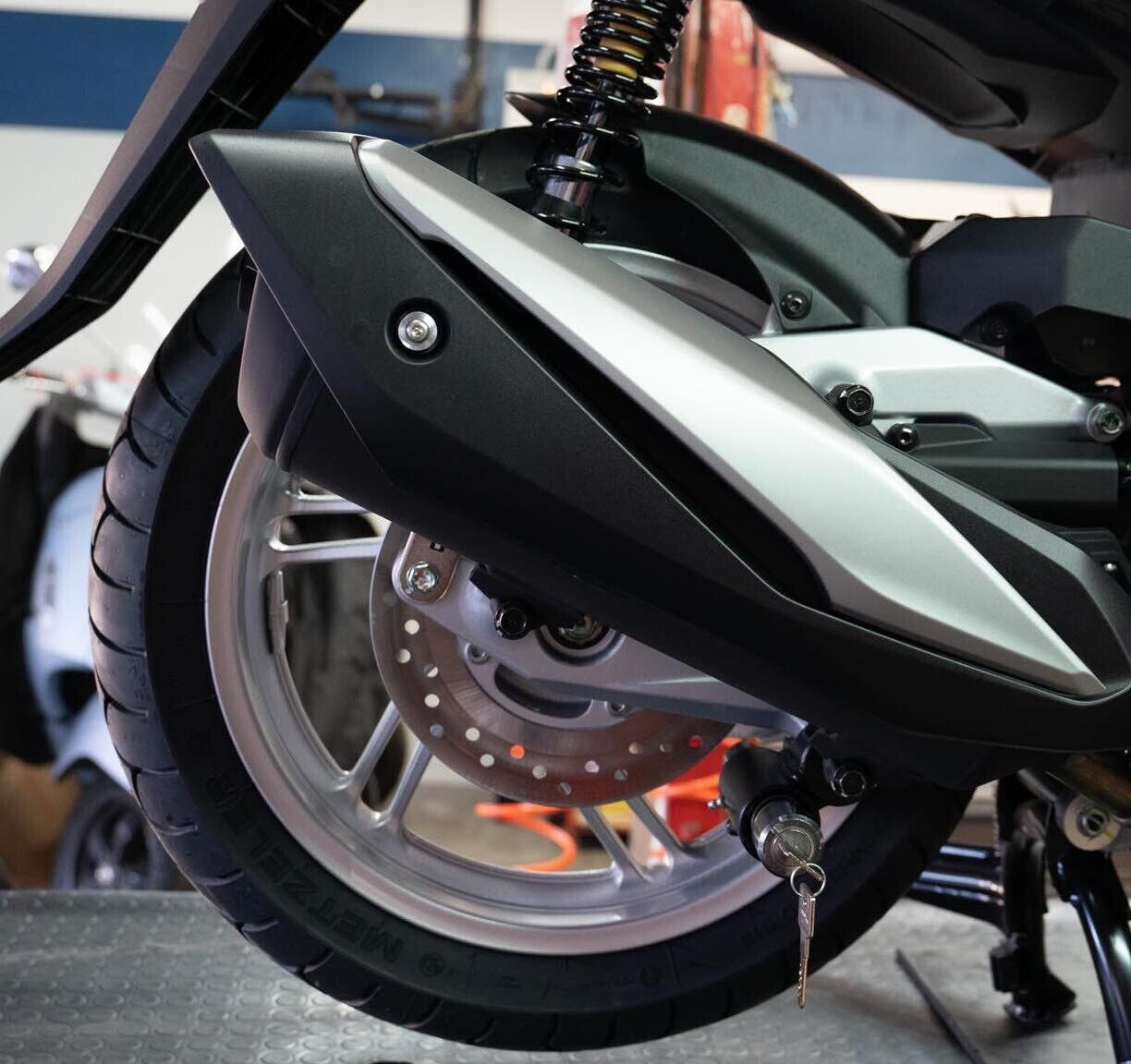 EasyBlock is a wheel lock that is fitted directly to your Motorcycle, allowing you to secure your SH350 in seconds.